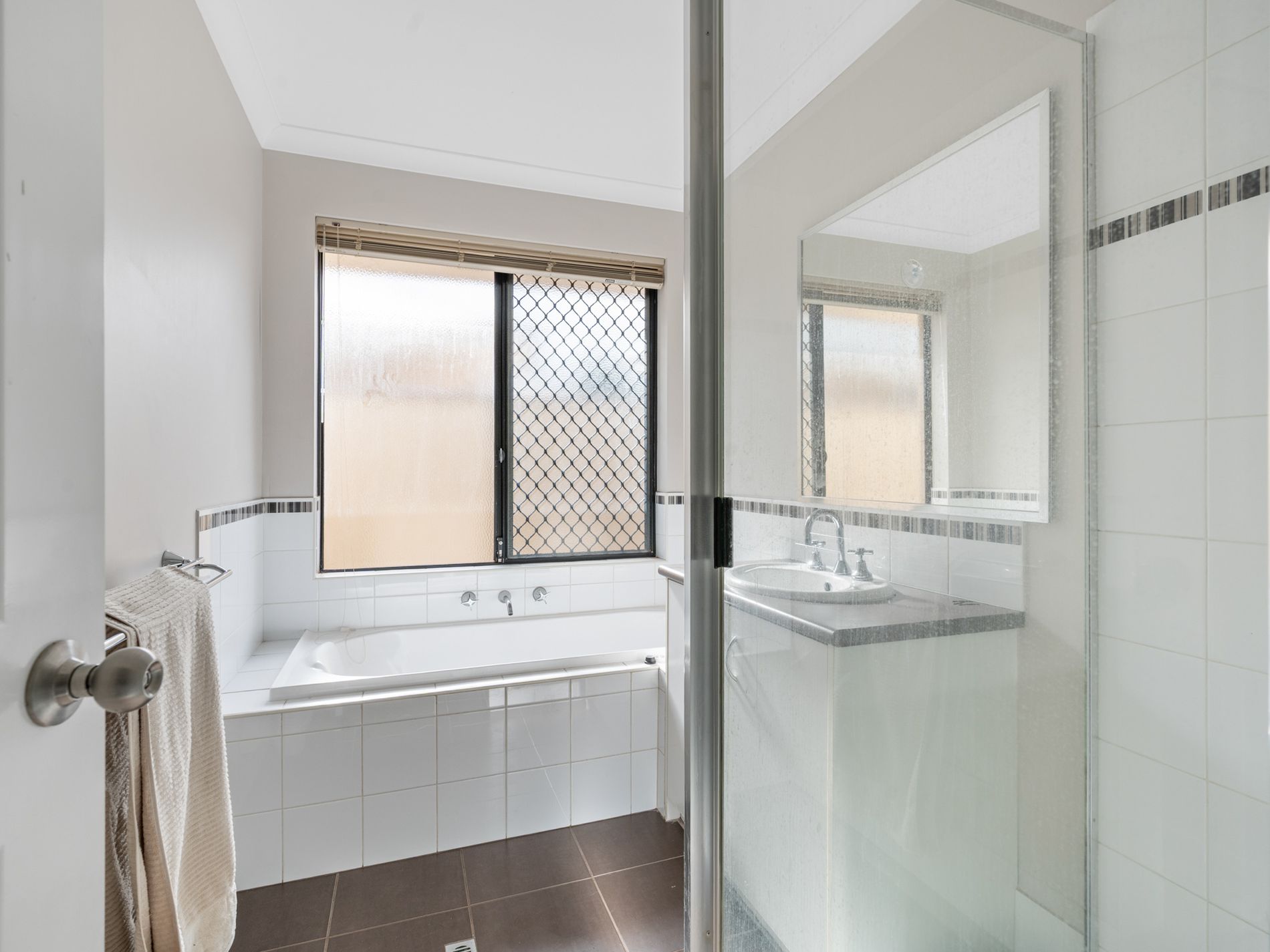- Ensuite with double vanity, bath & toilet,