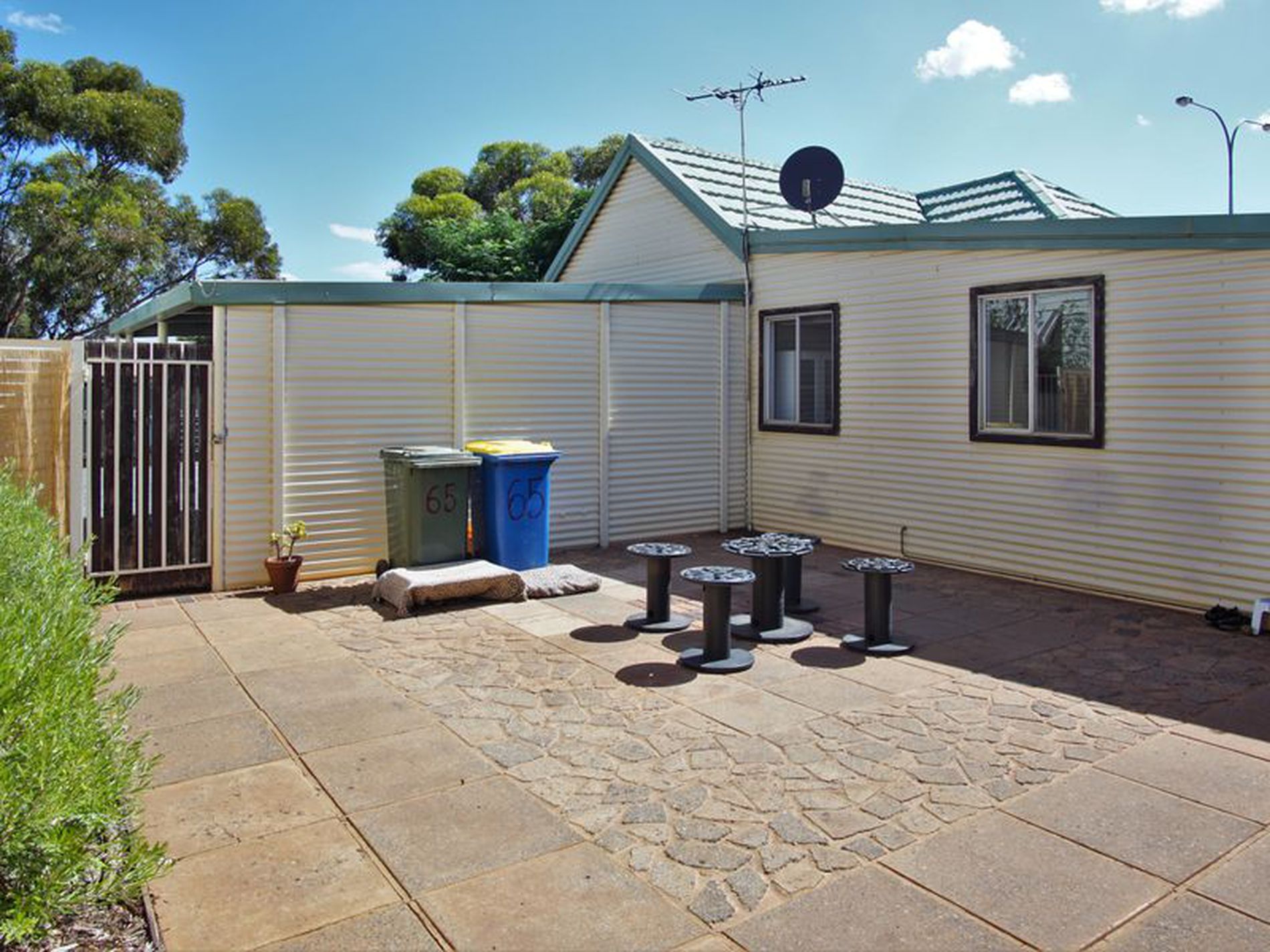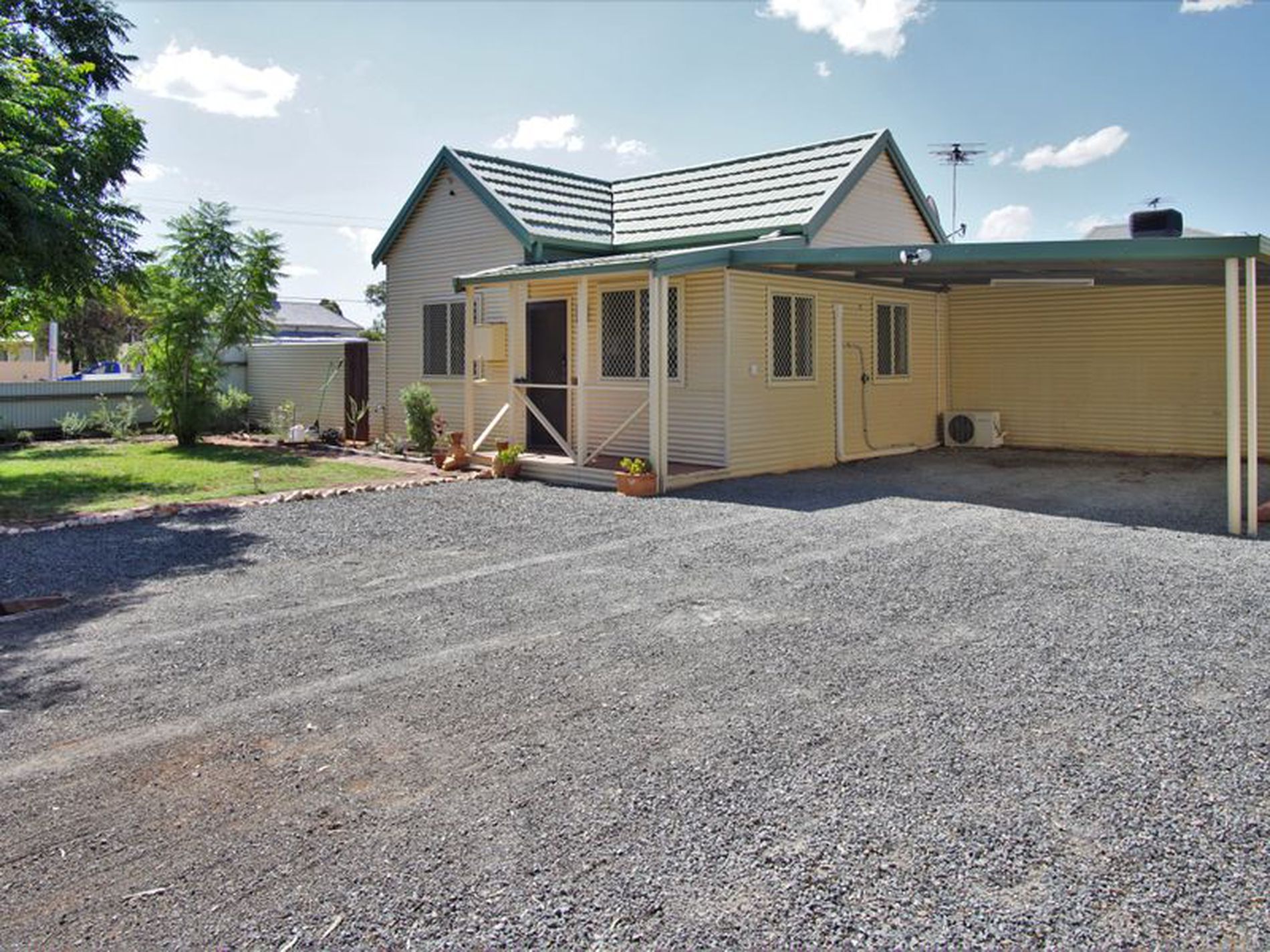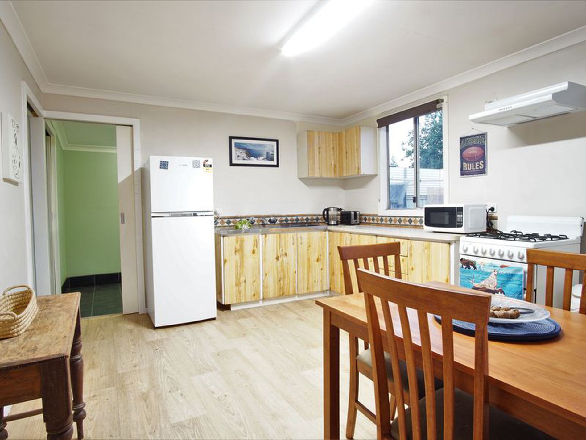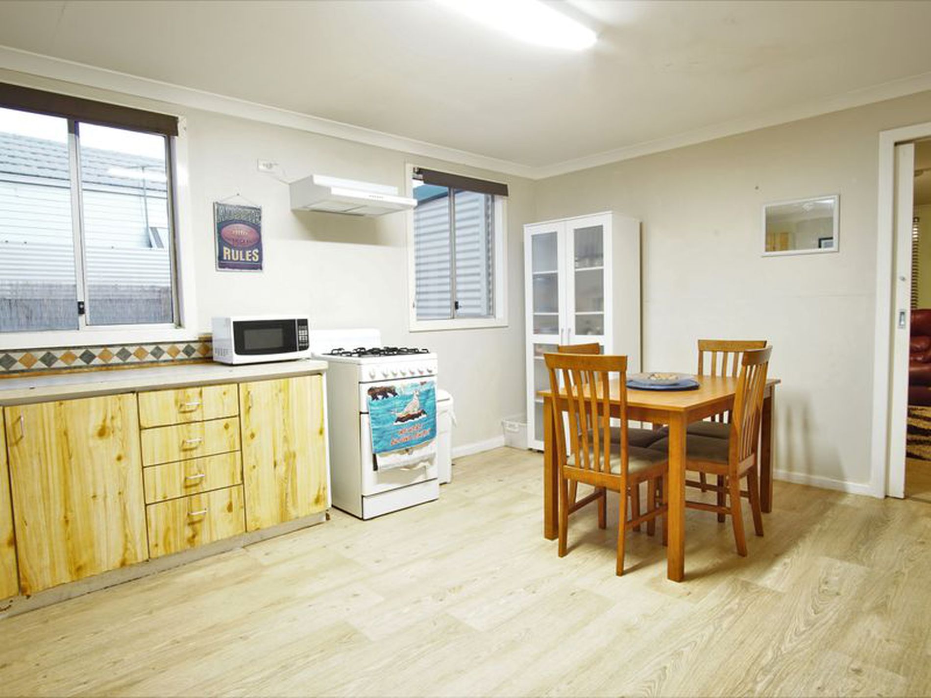 The house itself offers three bedrooms and one bathroom. The living area has a reverse cycle air conditioner. The combined kitchen and dining room is tidy and functional. The bathroom and laundry are both simply but roomy.