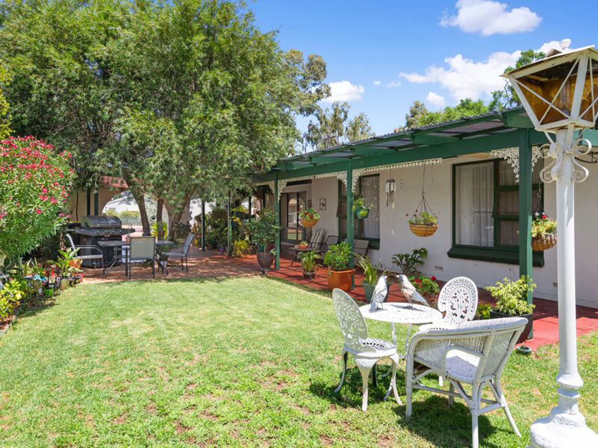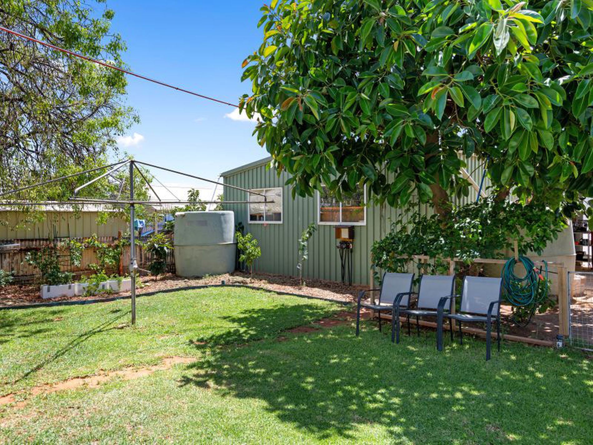 Enter and enjoy the lovingly cared for garden with fruit trees and plenty of green lawn space.