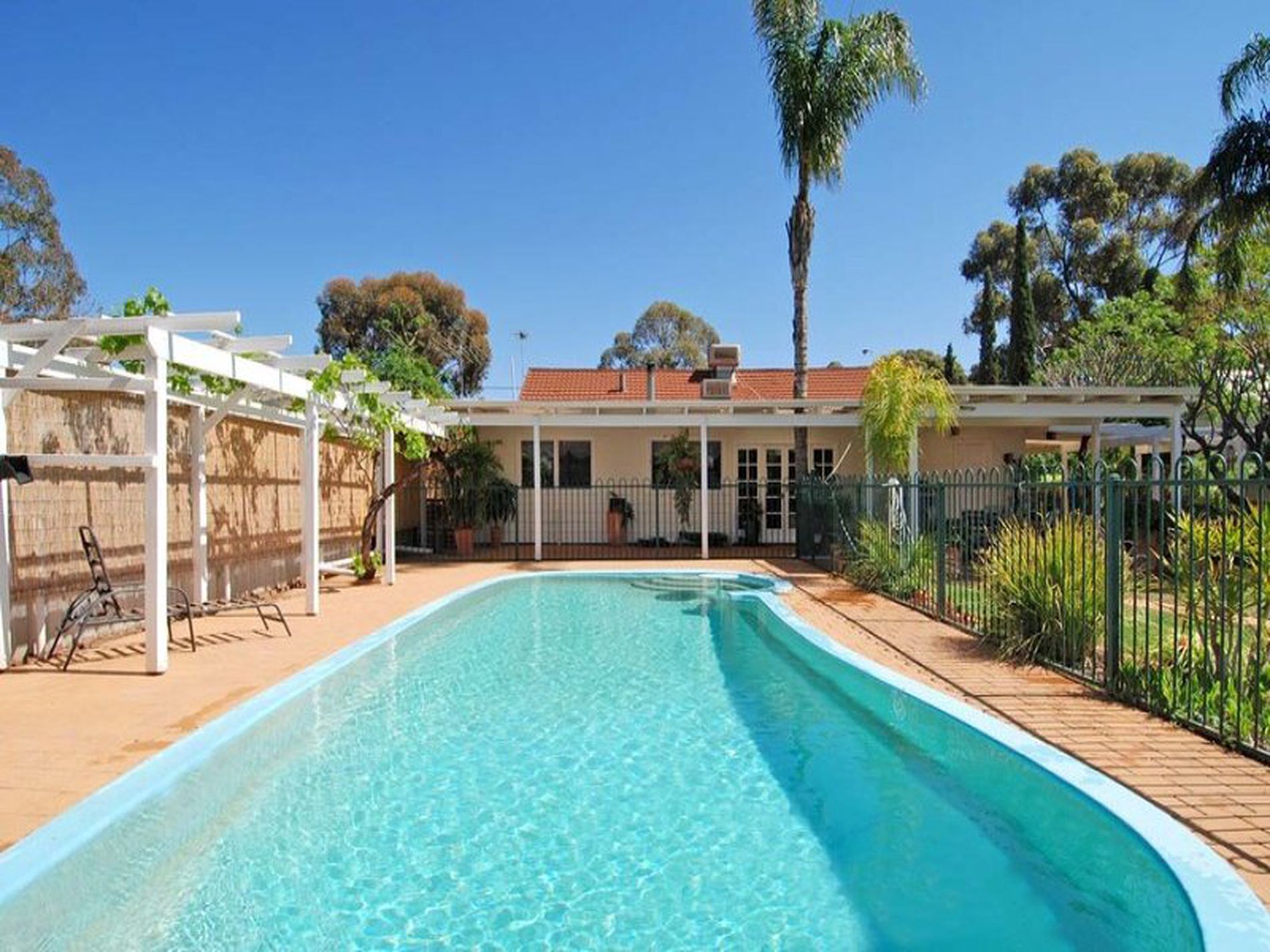 French doors lead to the large entertainers patio bordered by lush established lawns and fully fenced below ground pool.