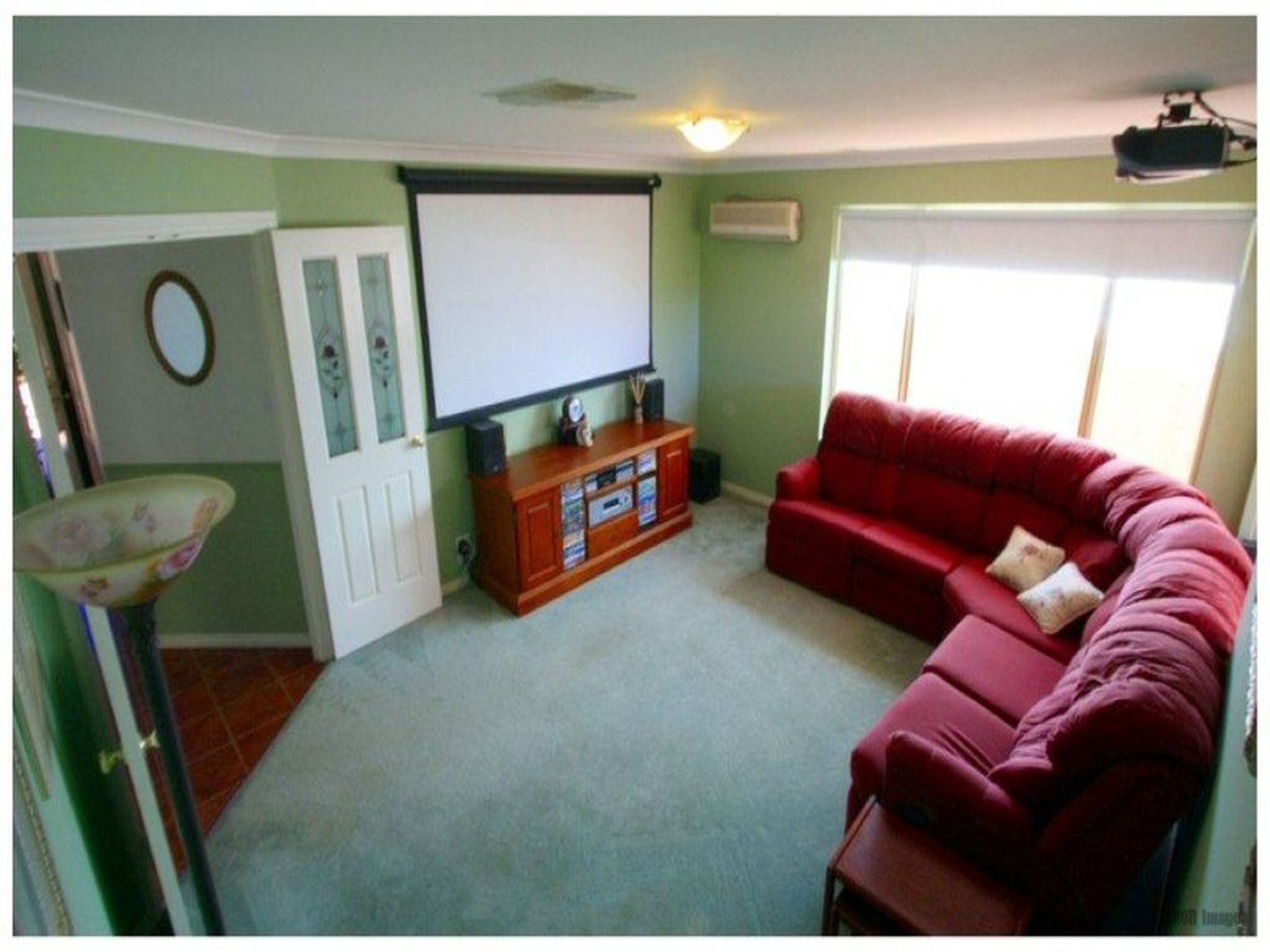 Evaporative air conditioner service the house with an additional split system unit in the theatre room.