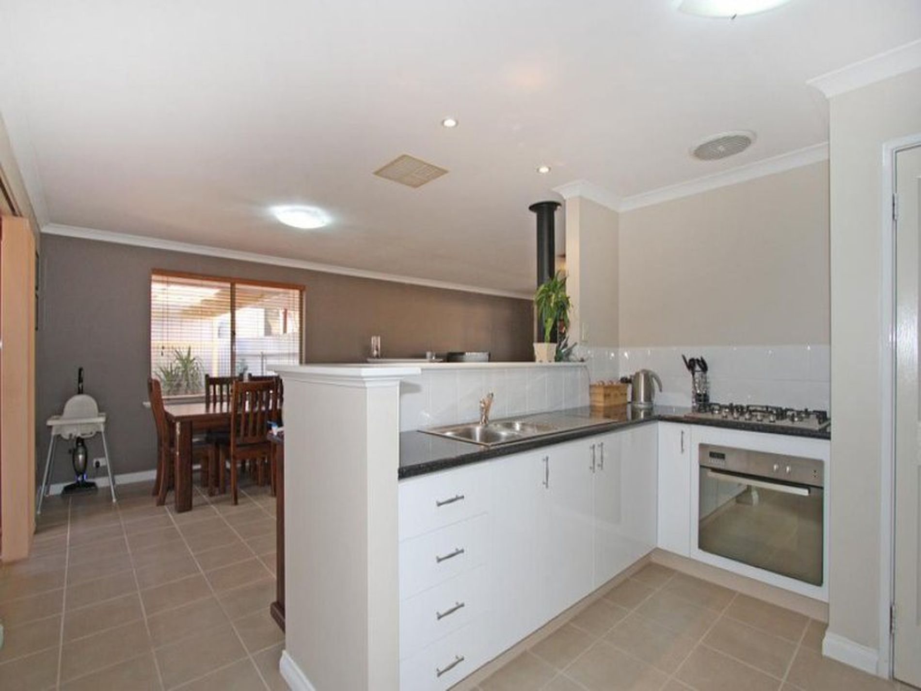 Modern open plan kitchen/dining, living area draws access onto the impressive new gabled paved patio that is large enough to host any BBQ party.