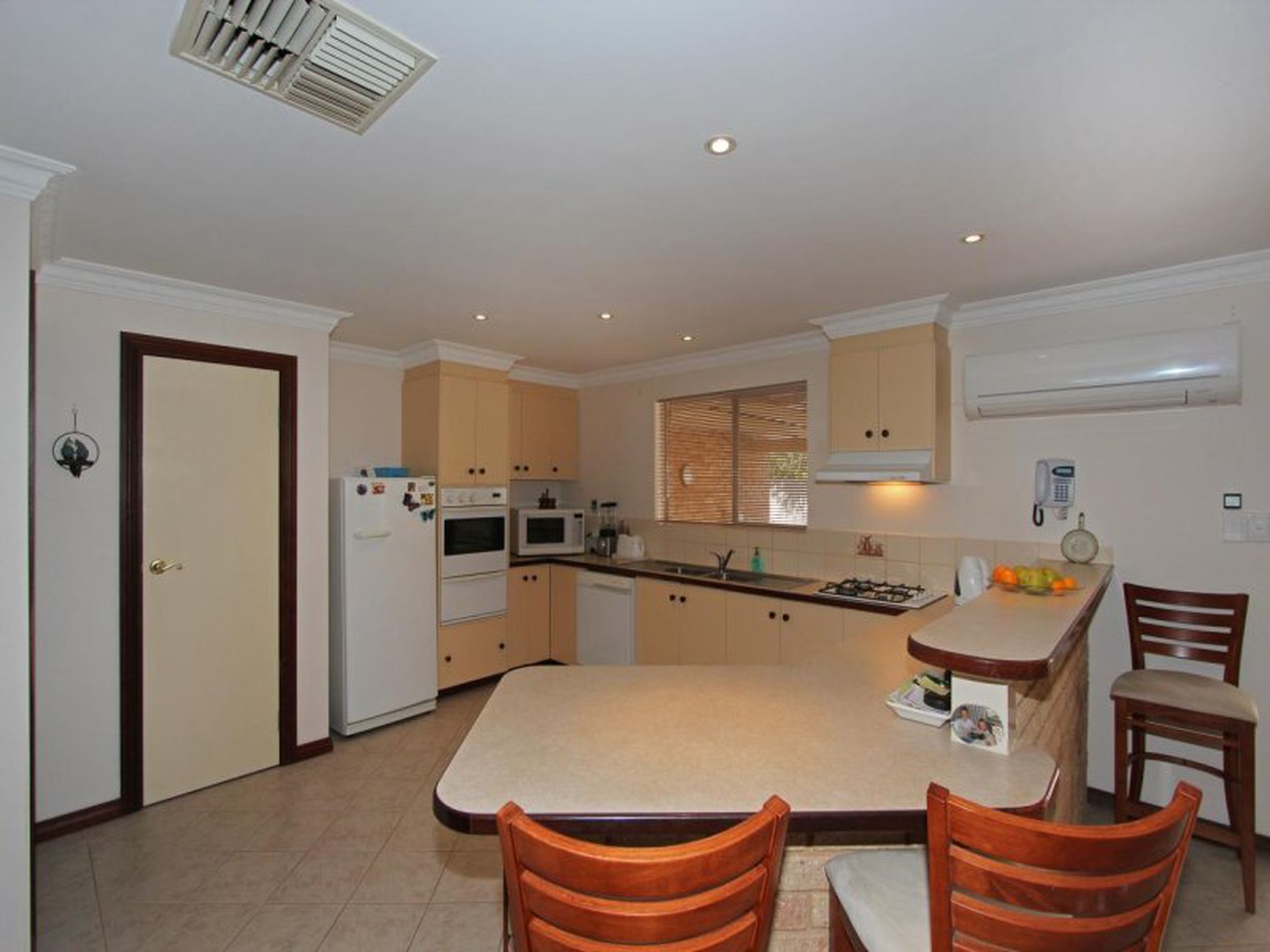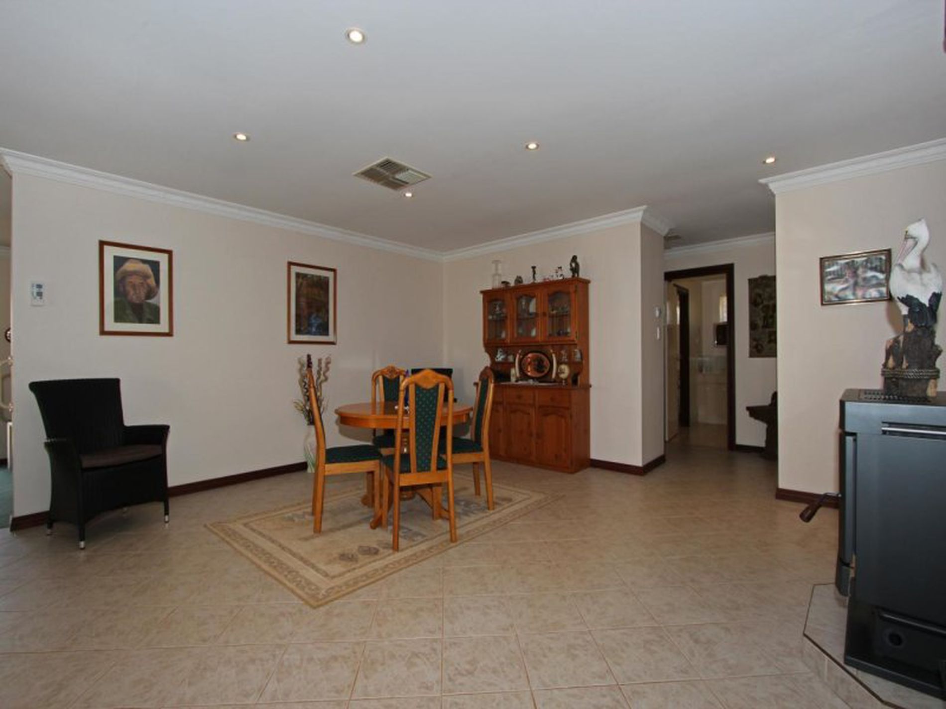 This space is heated by the massive tile fire, just installed recently. A reverse cycle split system also services this space. 2 Evaporative A/C's are roof-mounted for your cooling options.