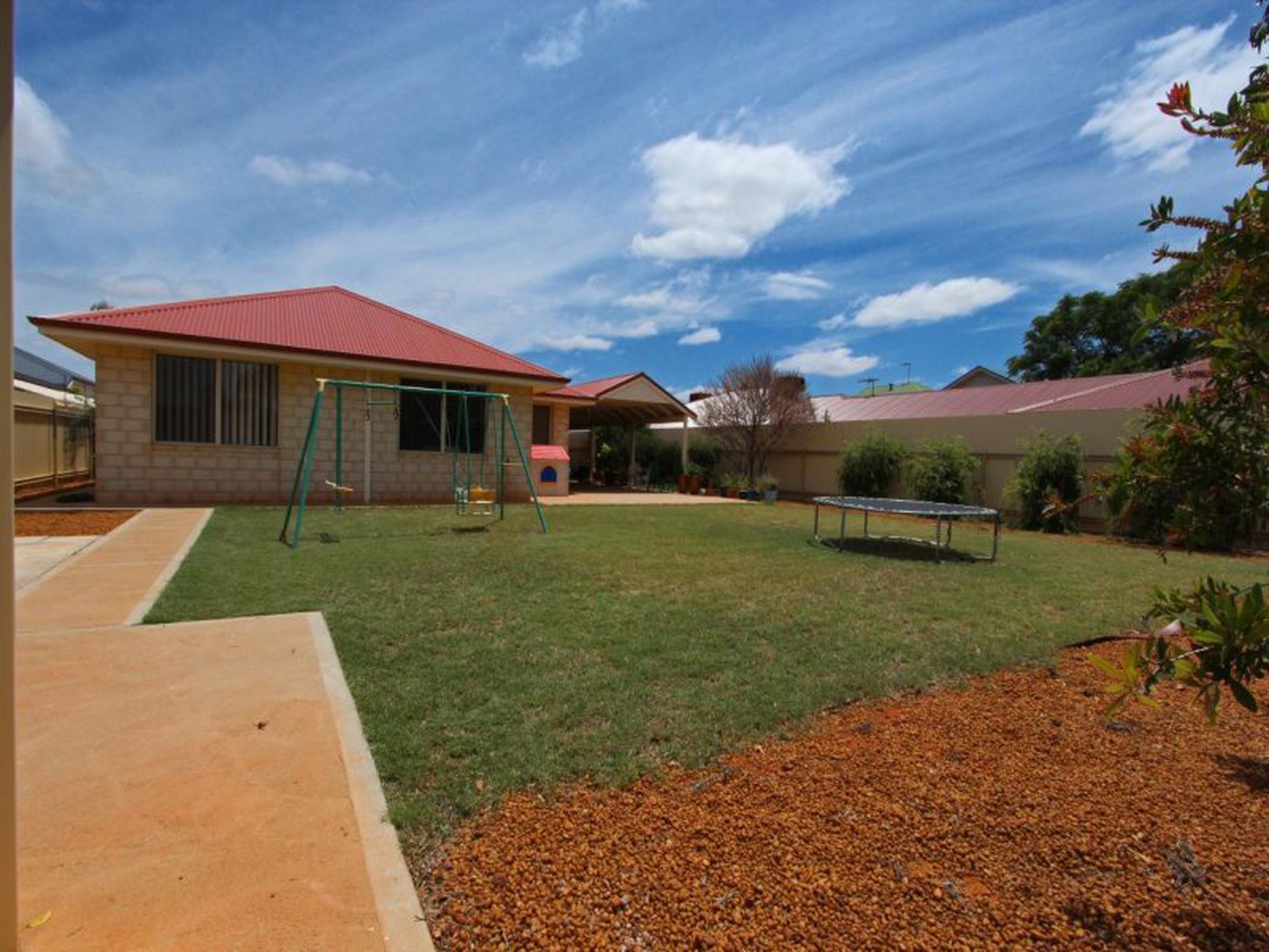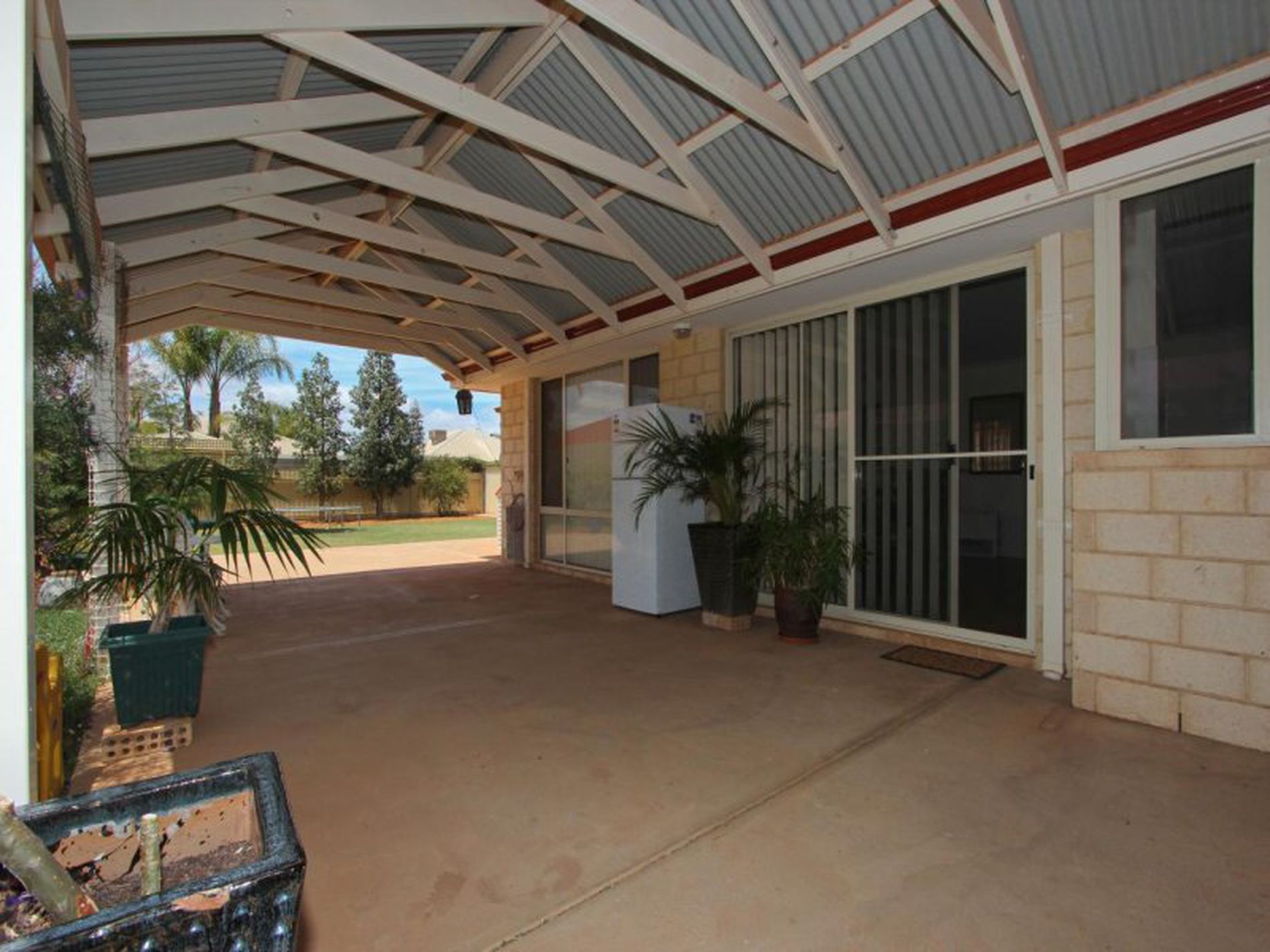 Entertain family and friends under the large pitched patio. The children will love the room in the backyard.