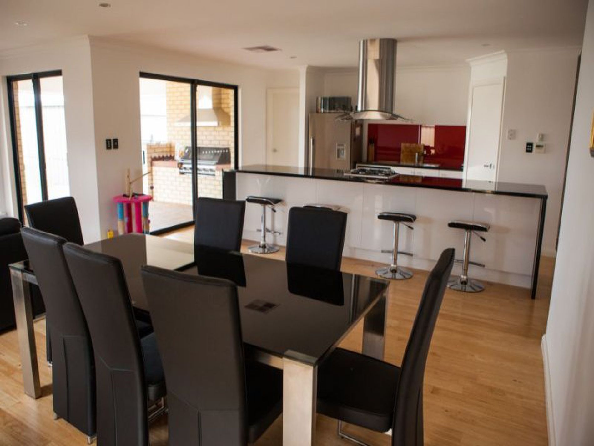 A fabulous decked patio leads off the family area with its own built-in BBQ.