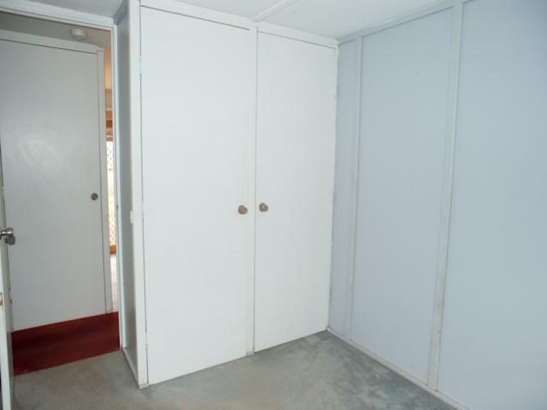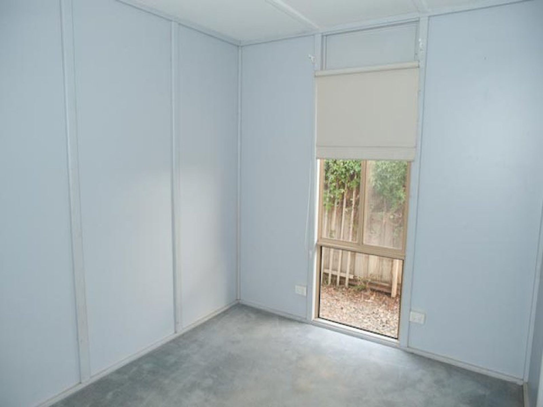 -Garden shed on cement pad with built in shelving