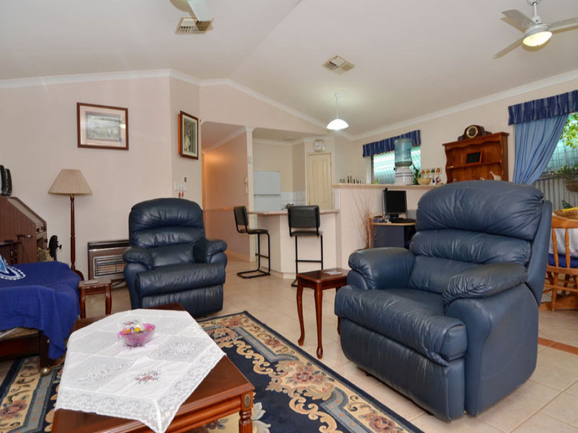 More than sufficient cooling in the home, with evaporative air-conditioning, split system and fans to the lounge.
