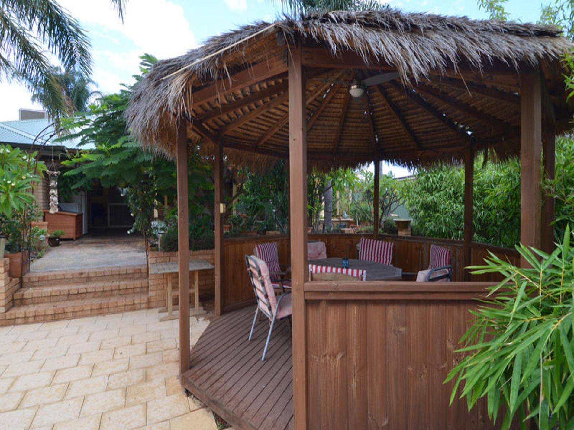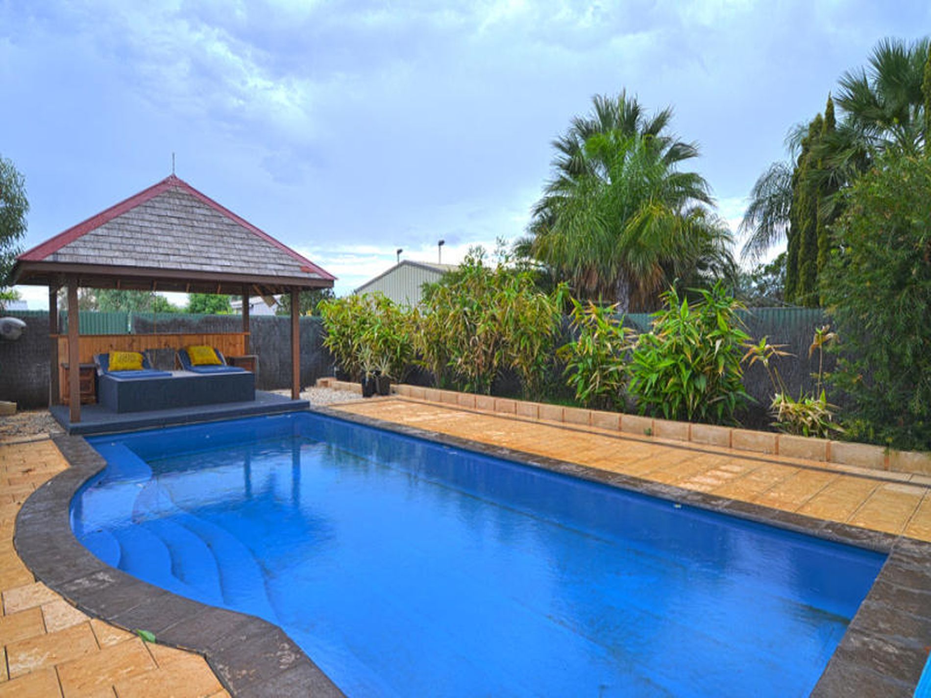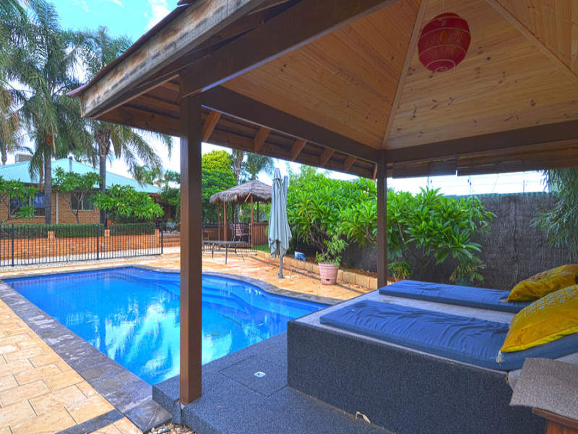 -Below ground pool, Bali gazebo