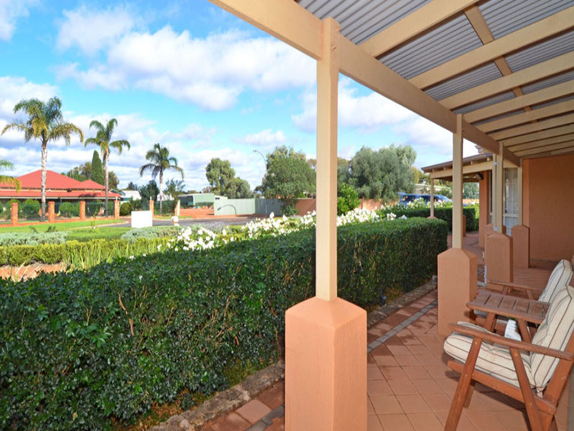 -Half Sized tennis court, beautiful water wise gardens