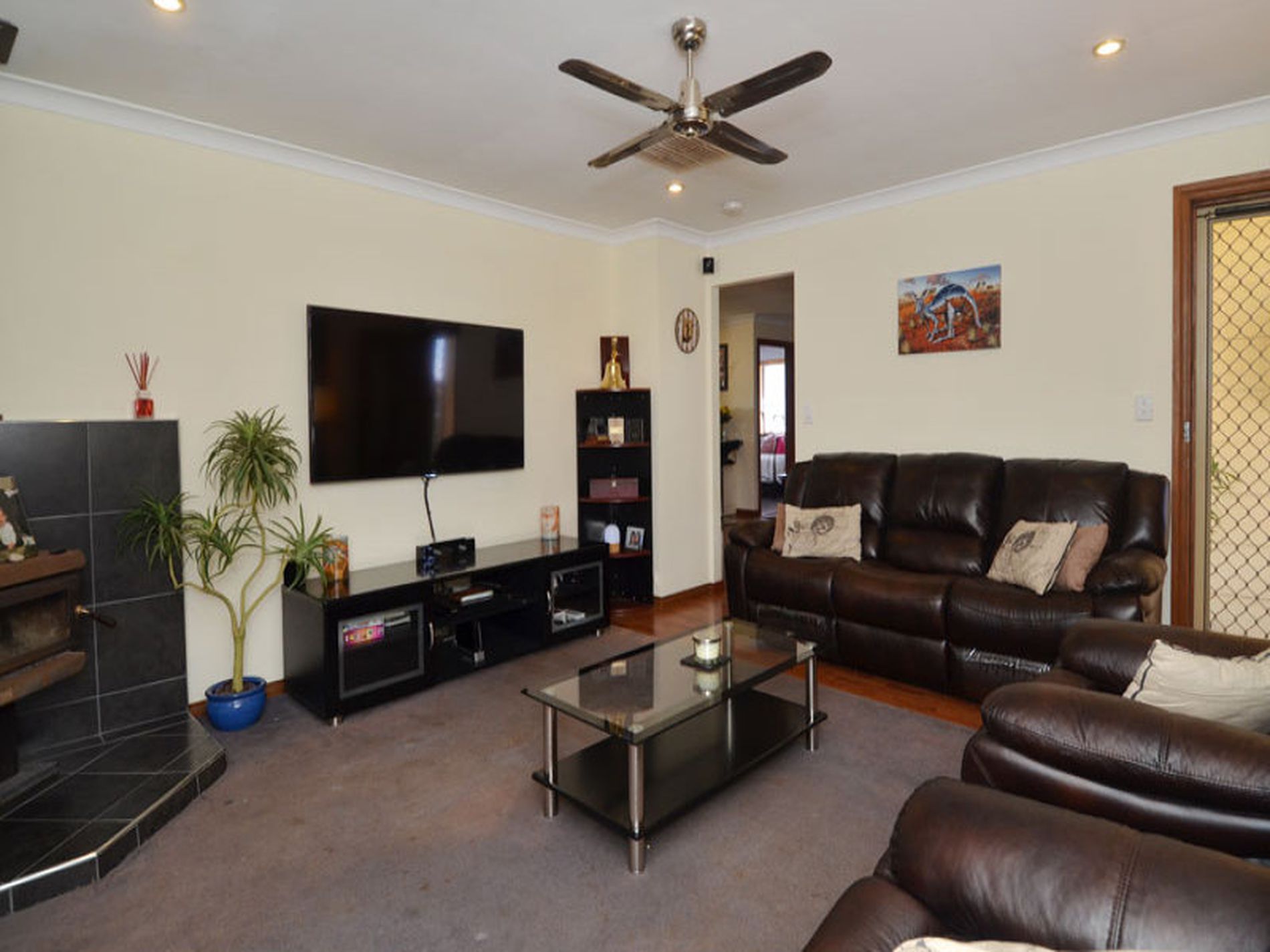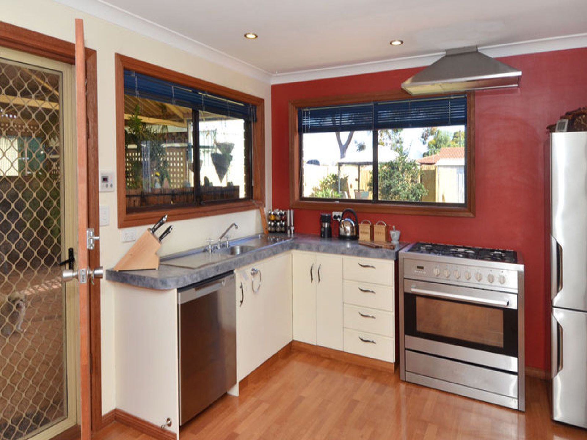 Four bedrooms, all with robes provided. Spacious kitchen with natural gas appliances- with good storage and large working bench for food preparation.