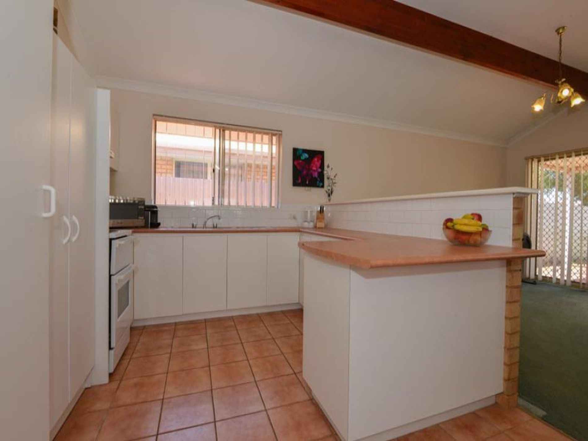 Open plan living, 3 bedrooms, main has walk in robe and minor bedrooms has built in robes and 2 bathrooms.