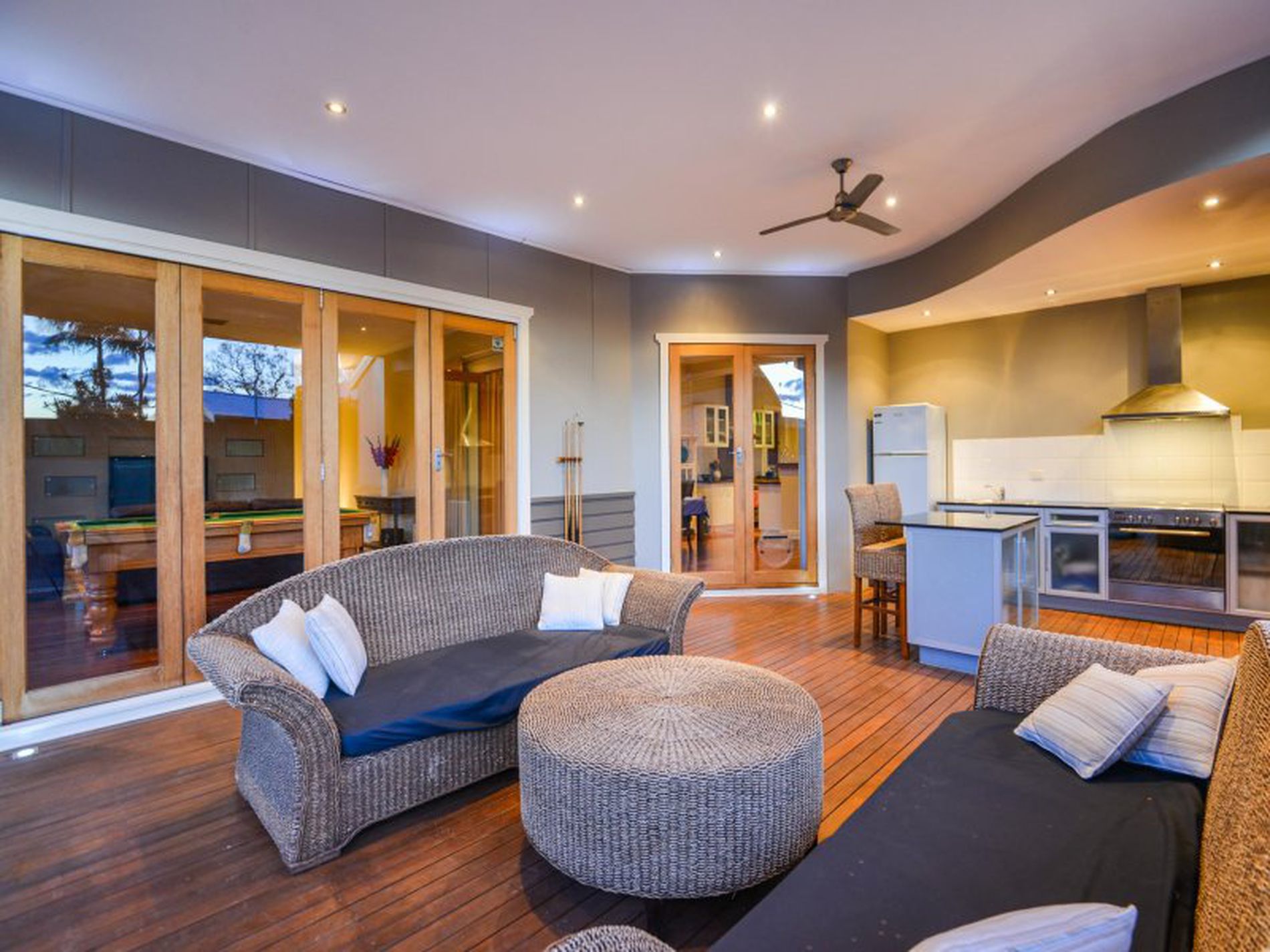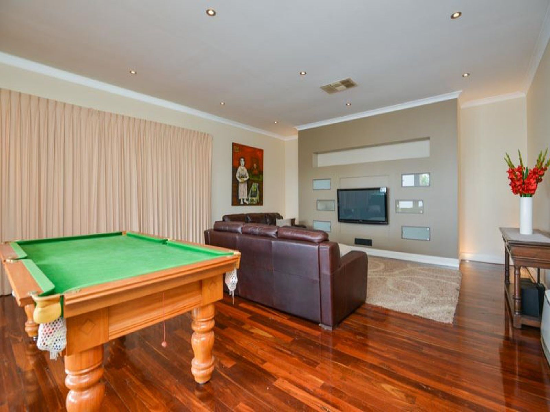 The front balcony/veranda is an ideal spot for sunset drinks, overlooking the greenery of the tree lined Lamington streets and after drinks why not retire to the fabulous outdoor entertaining area which opens up through the French doors from perhaps the most outstanding family/games area I have seen. The pizza oven and BBQ will allow you to prepare a feast for the family, as they frolic in the sparkling below ground pool (brand new liner!), before joining you on the terrific patio area.