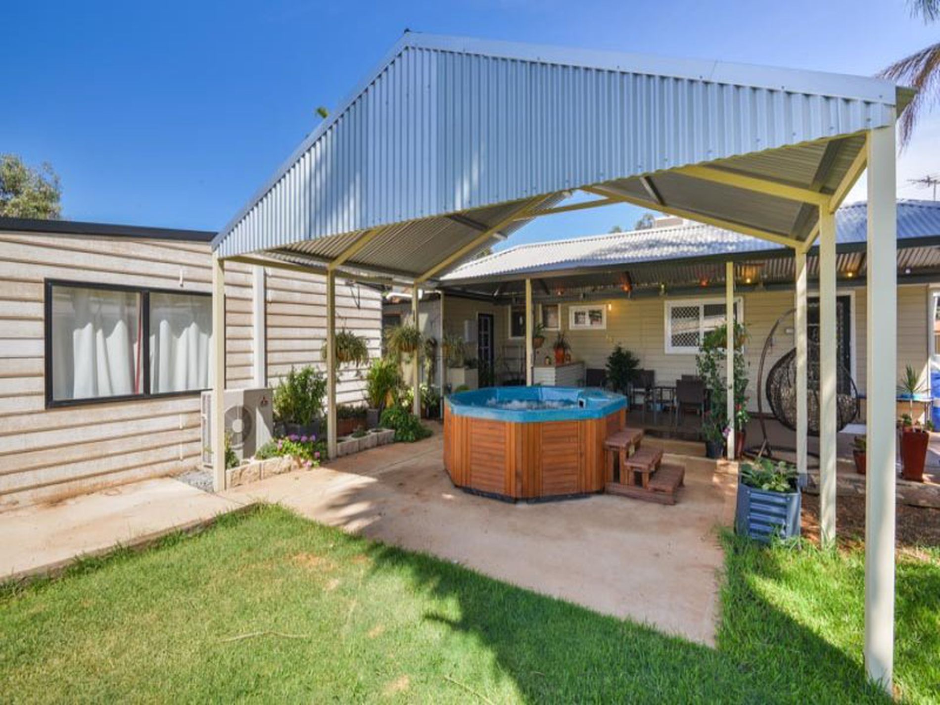 2x gable patio, shed with lane access.
