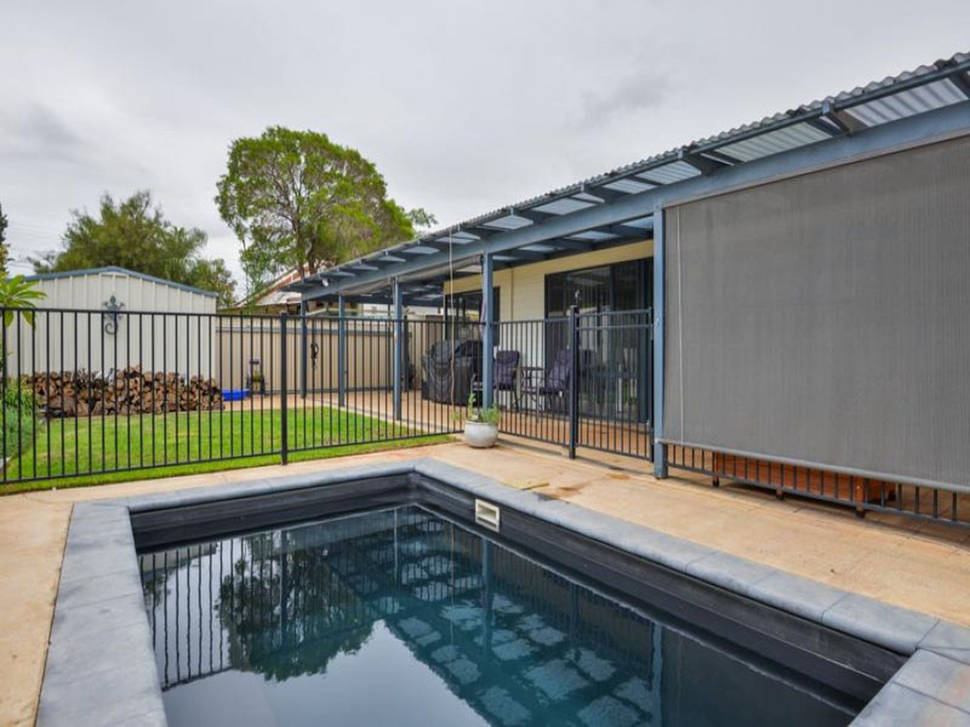 The back yard has a below ground pool & the yard is easy care and low maintenance and in a great location close to schools and shops.