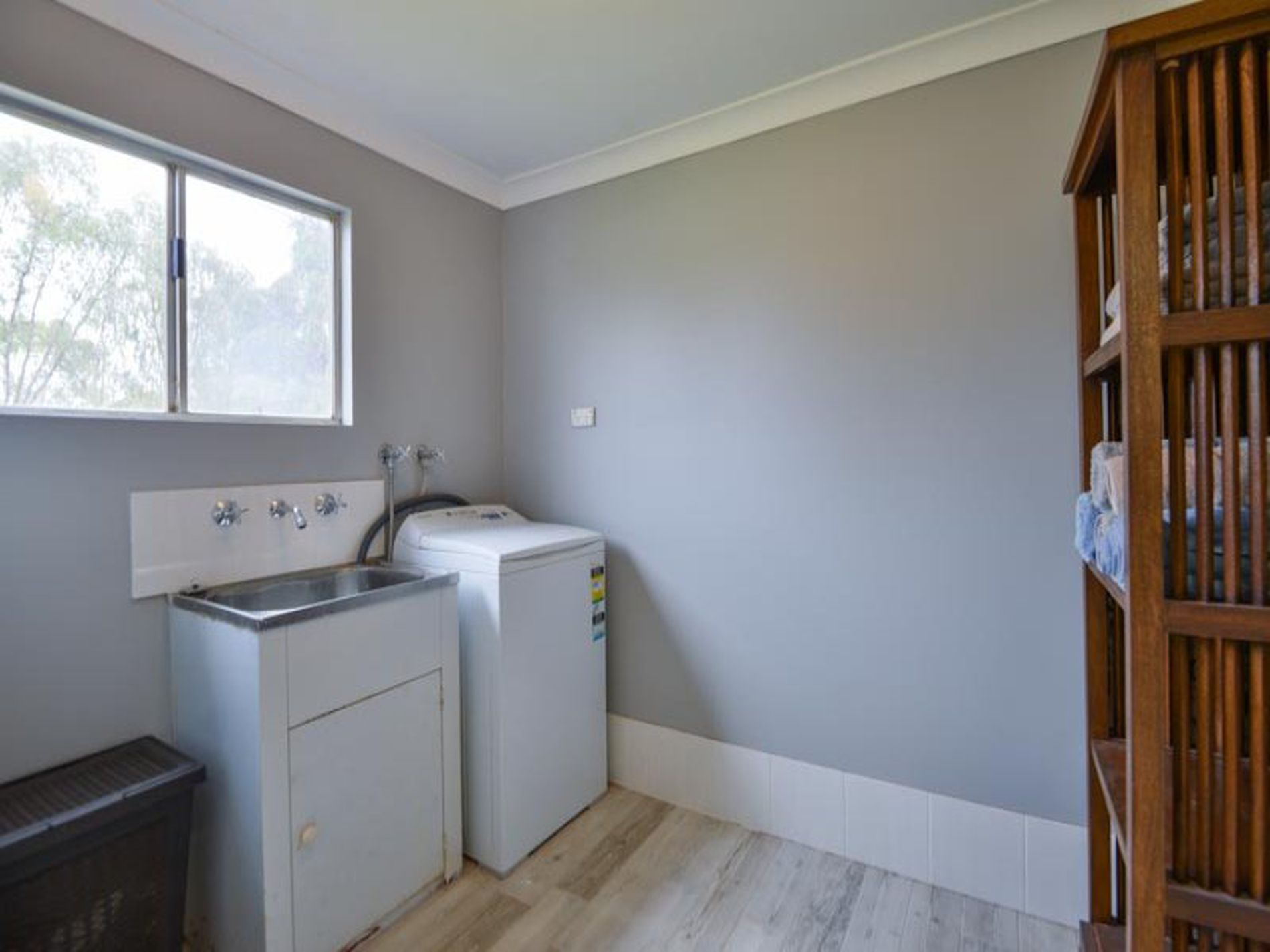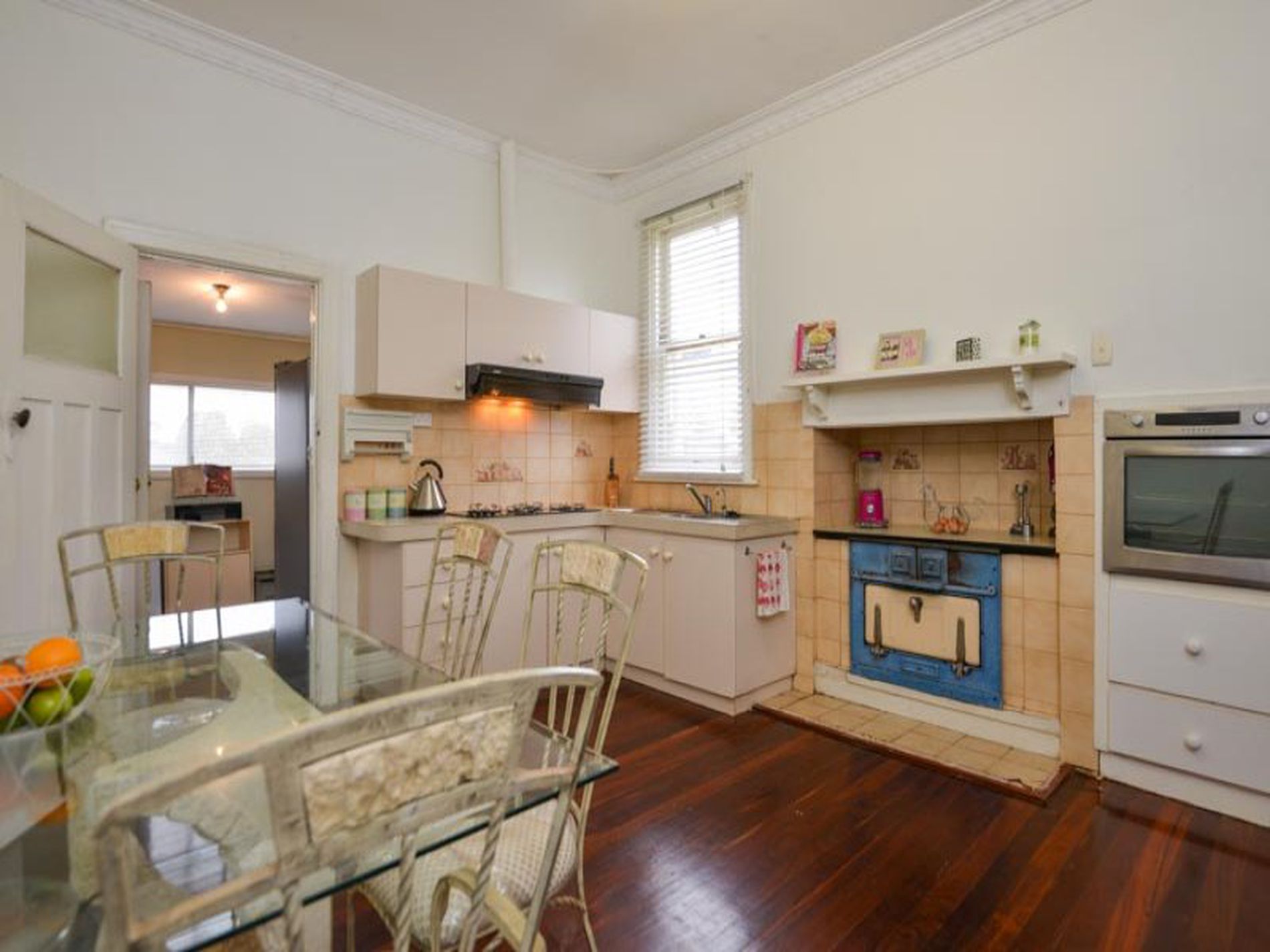 Polished jarrah boards, metters stove