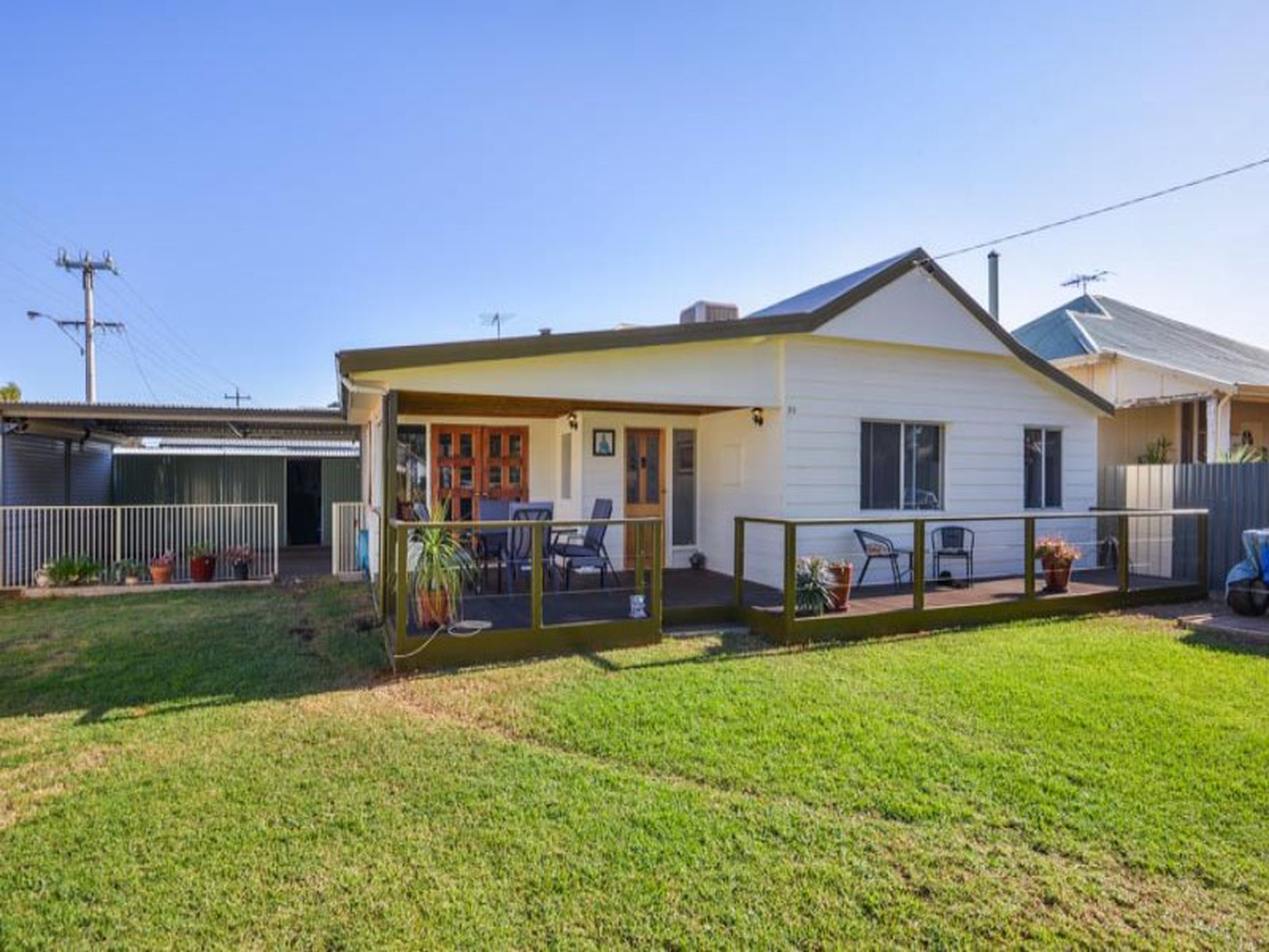 -Front and side patios with decking