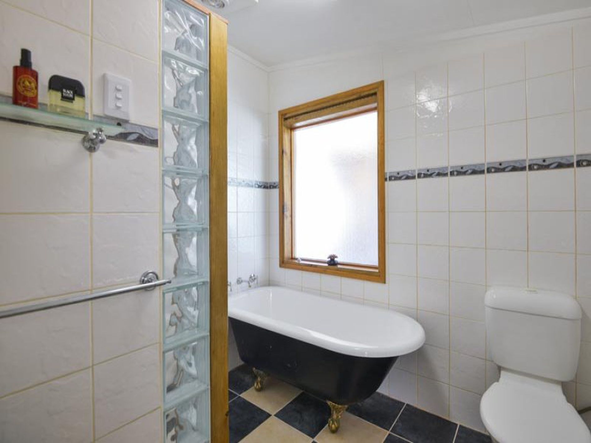 -Trendy bathroom with claw foot bath