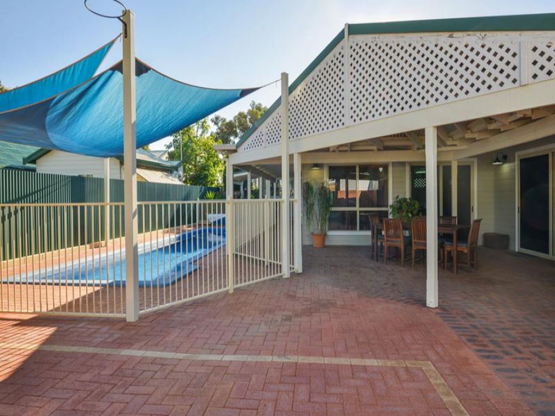 • Pitched patio over looking lap pool. Electric gates.