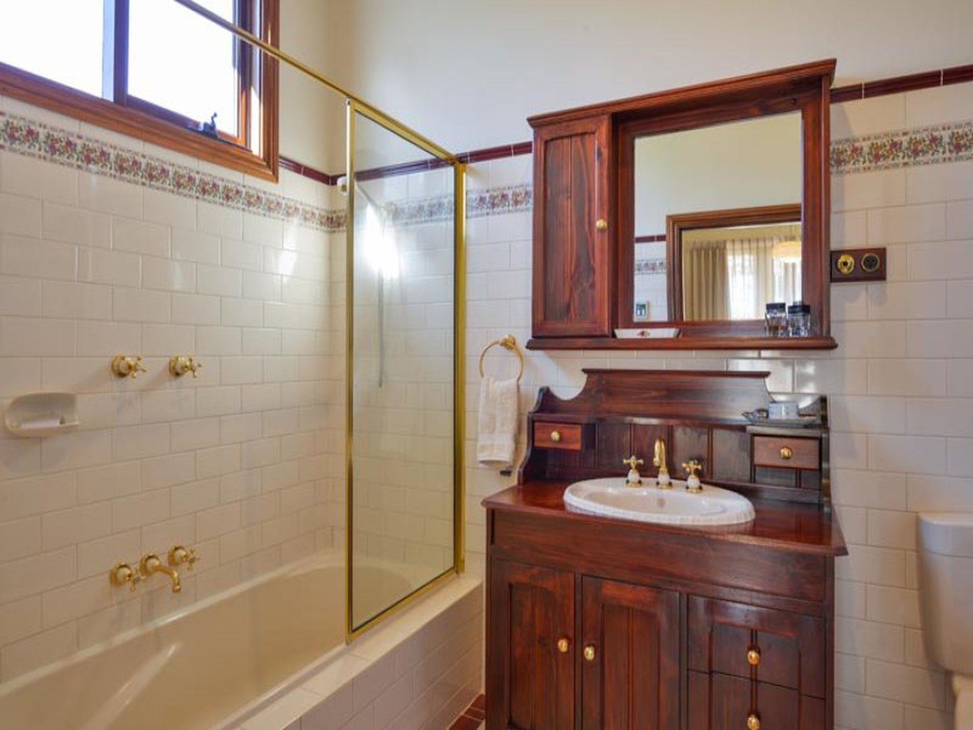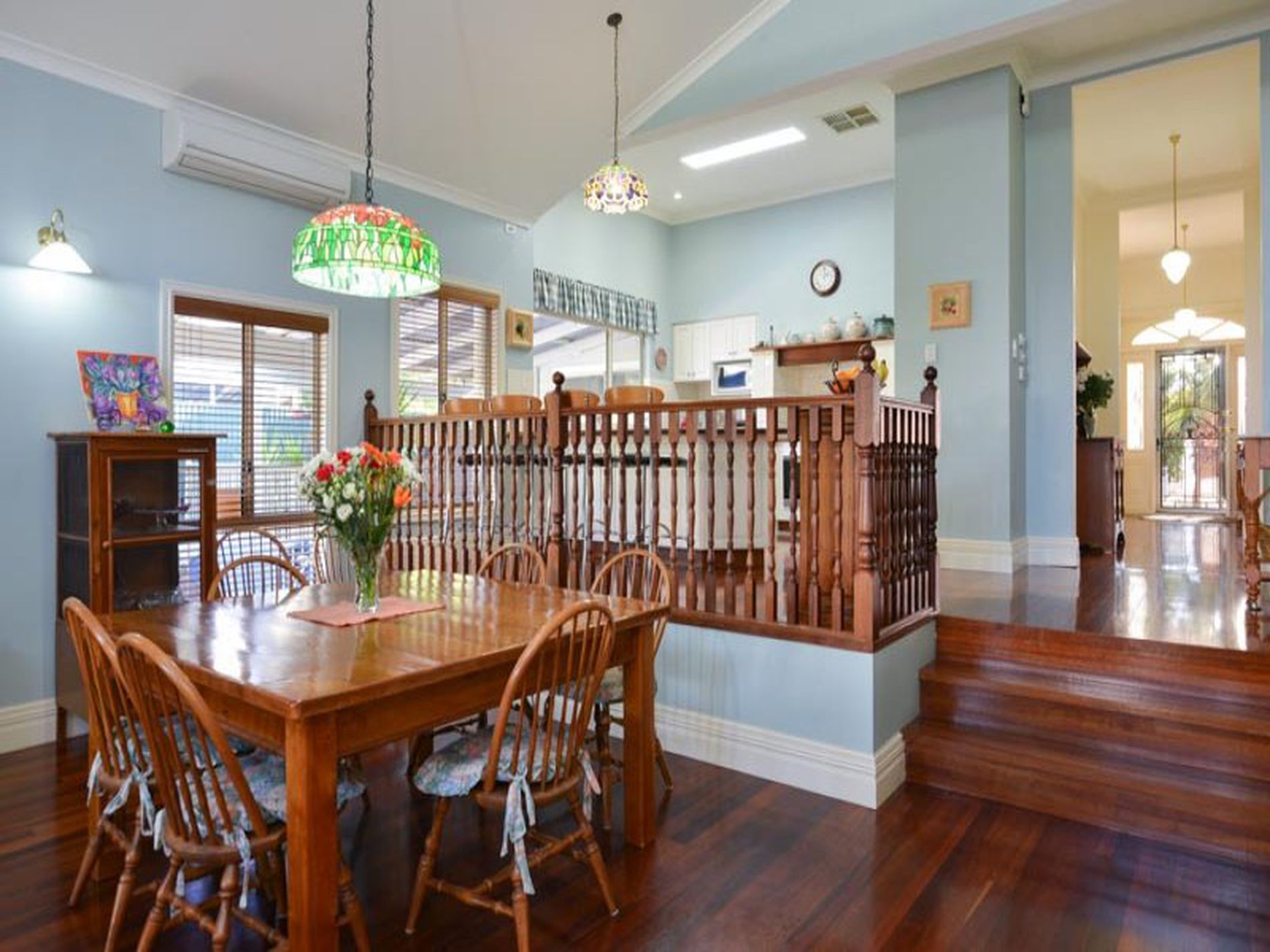 • Jarrah boards, lead light windows and fancy tall ceilings throughout