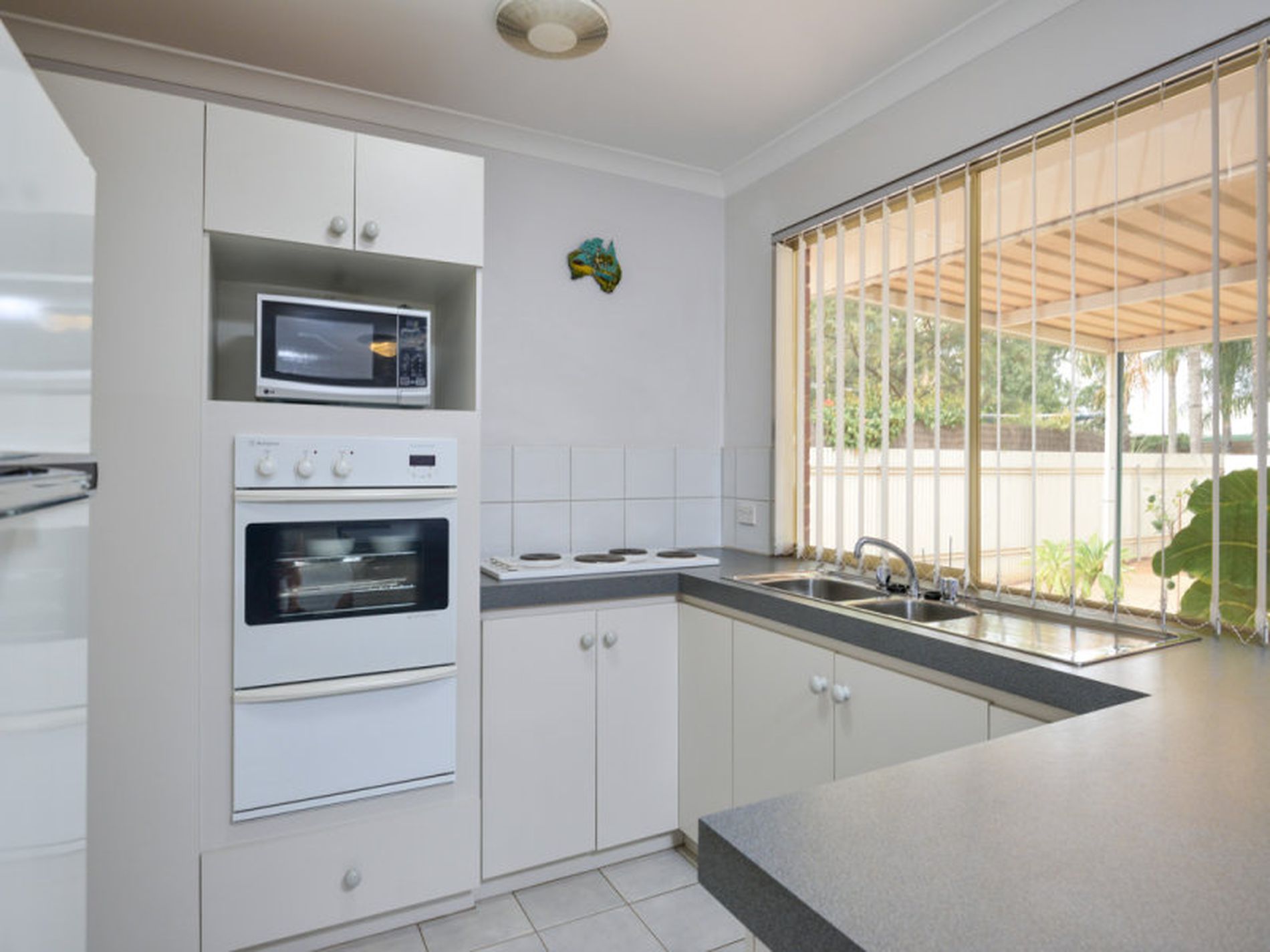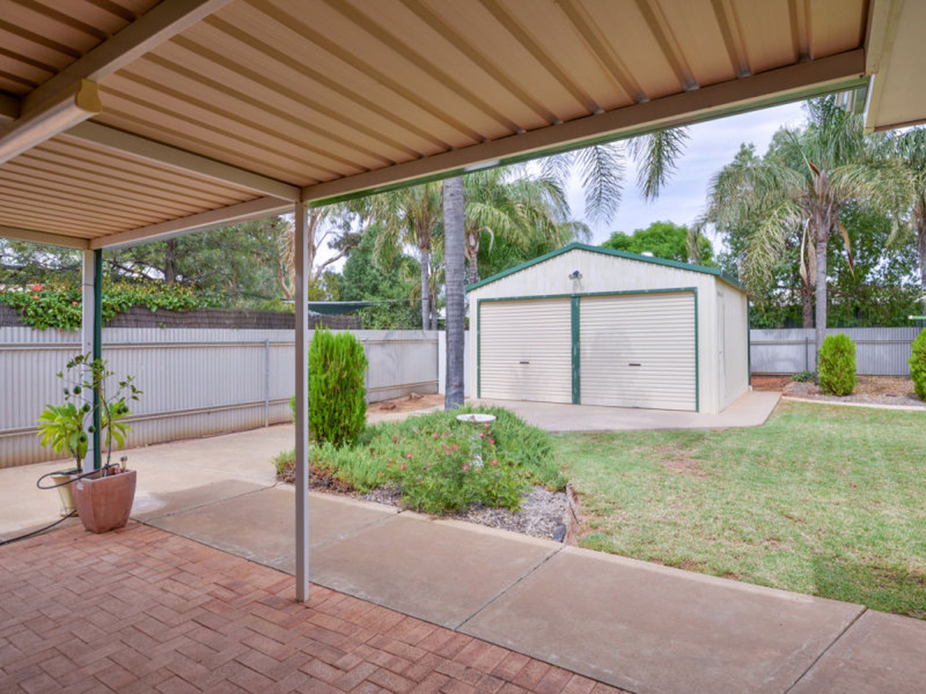 The main lounge room with French doors includes a dining area and gas ducts for heating with quality carpet flooring not just in these rooms but throughout the property. The perfect sized tiled kitchen/family rooms is well appointed electric stove and cooktop. A glass sliding door opens out to the manicured lawns, easy care gardens, flat paved patio and powered 6m x 6m shed with excellent access plus 3m x 3m garden shed. Single carport under the main roof makes parking a breeze.