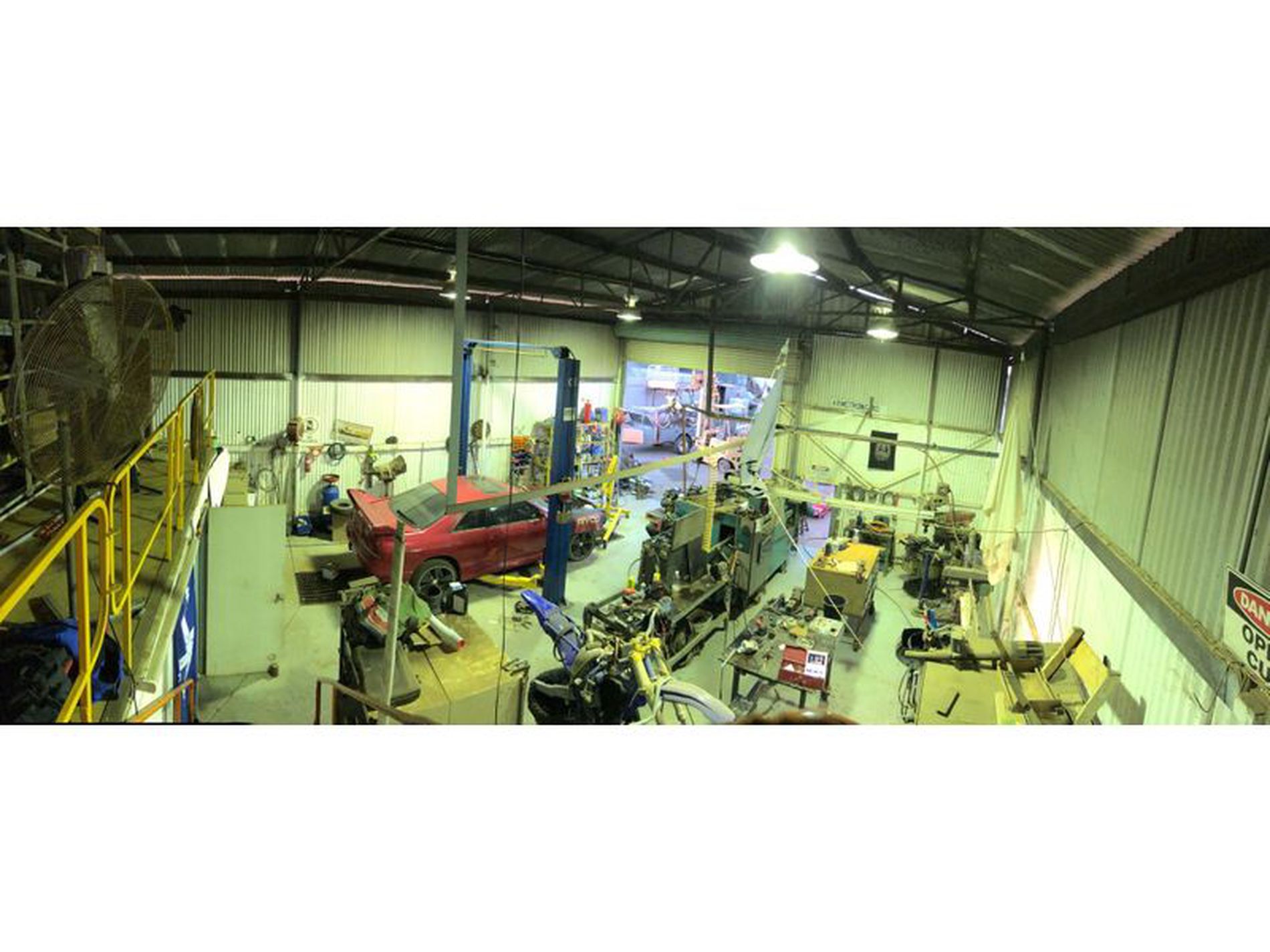 The workshop is neat and tidy and is suited to a smaller operator for mechanical type work. There is a mezzanine floor which sits above the living quarters.