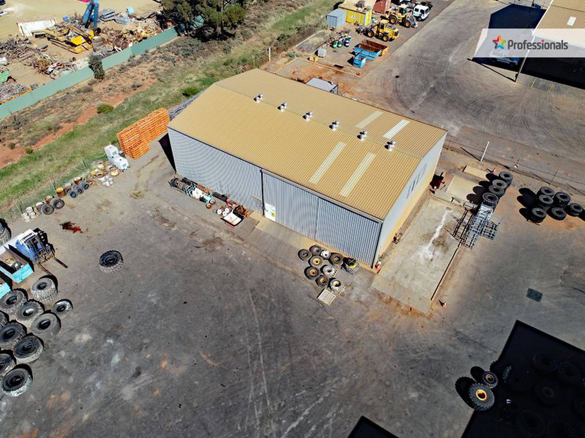 The 1740m2 combined workshop/office and ablutions area has a truss height of approximately 6 metres with 3 large steel roller doors at the front and a lean to on the eastern side. The air conditioned offices comprise a front reception, partitioned office, ablution facilities and a kitchen/amenities room. The 7994m2 yard has client/staff parking and yard area is fully bitumised.
