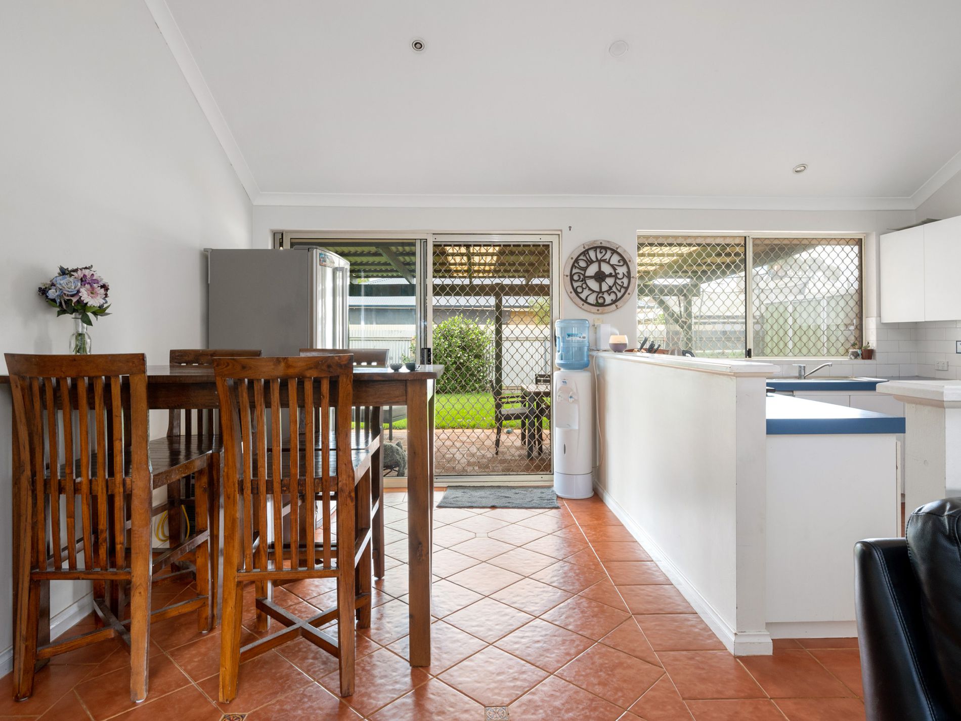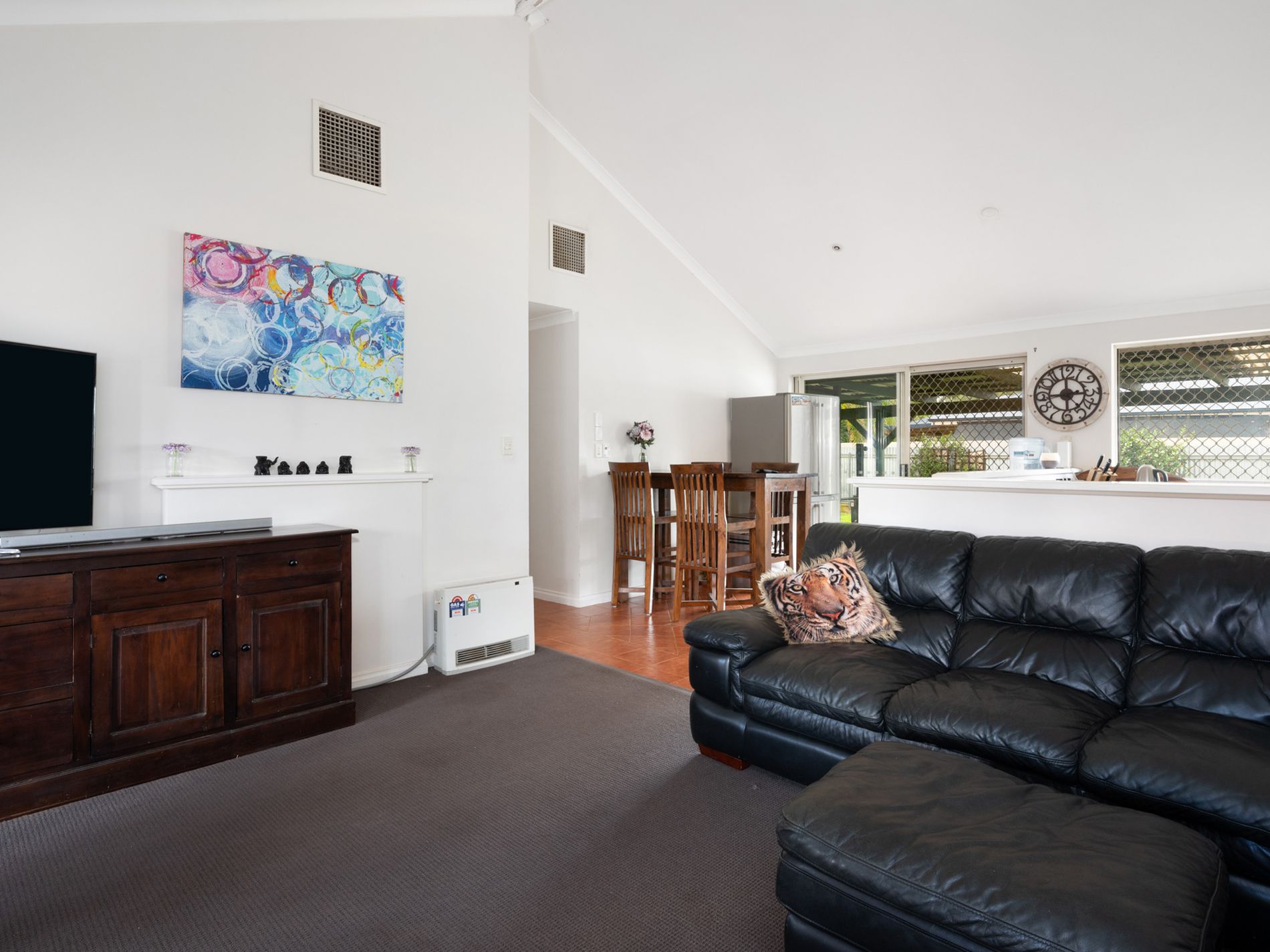 Enjoy spacious feeling in the main living area due to high ceilings overlooking a lush rear lawn area.