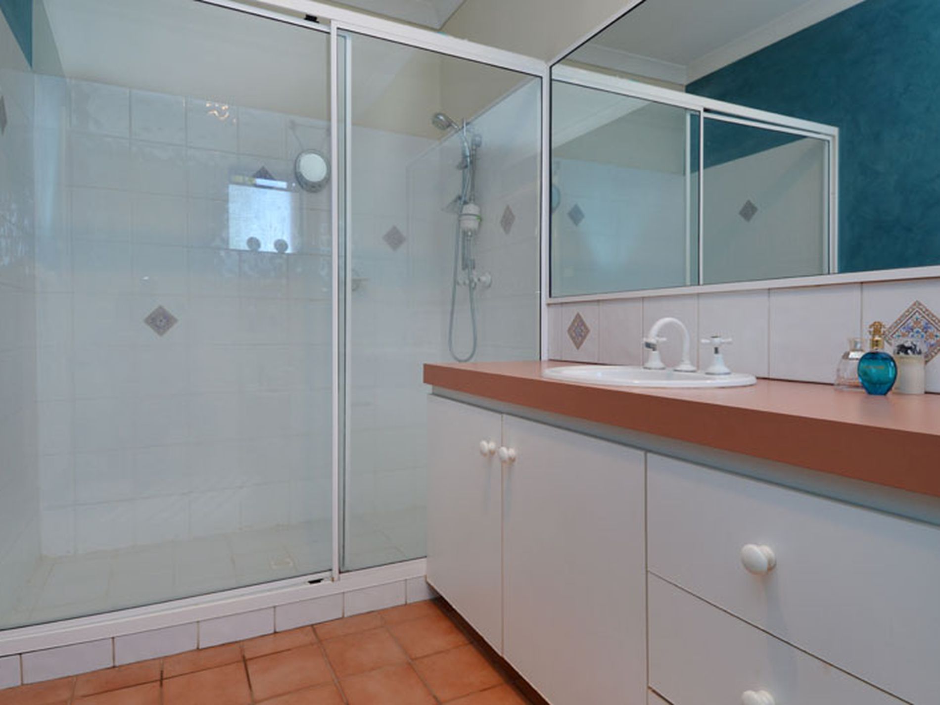 • Main bathroom housing shower, vanity and toilet
