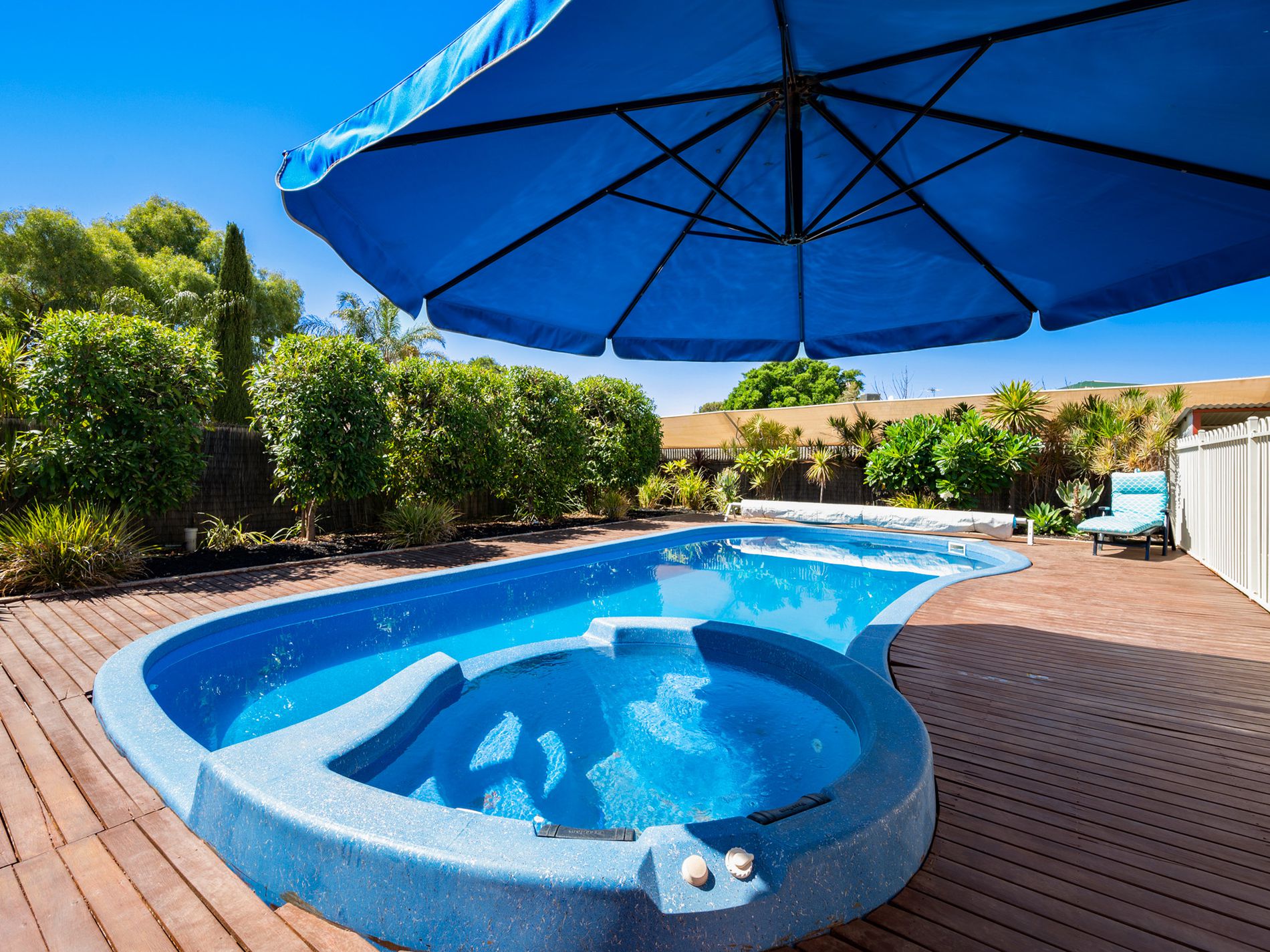 • Below ground swimming pool – heated with creepy crawly & pool umbrella