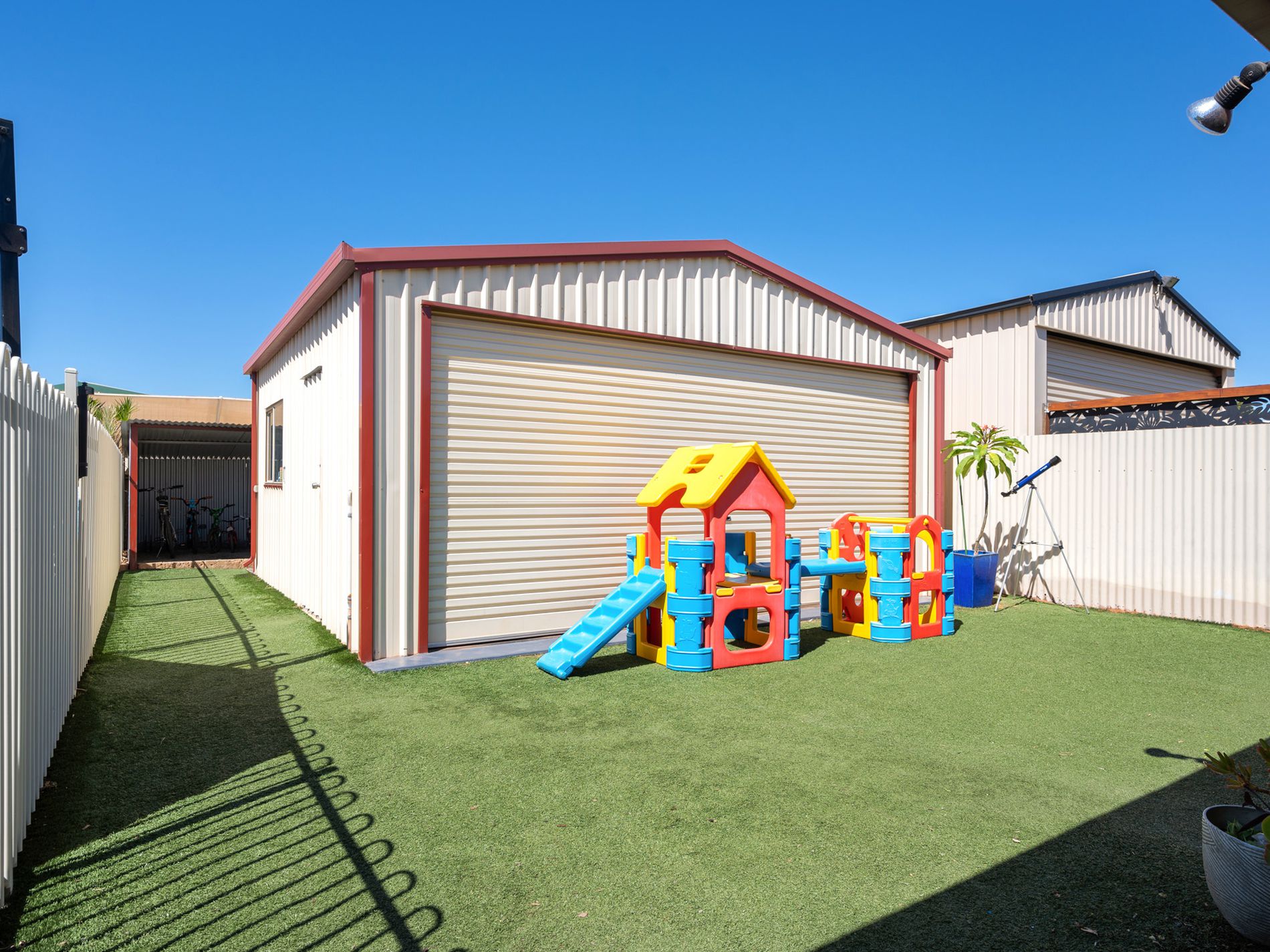 • Powered shed with roller door – shed insulated and alarmed